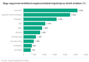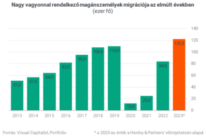 Összességében pedig az látszik, hogy a milliomosok egyre inkább „mozgásba lendültek” az elmúlt években. Az elemzés 10 évet felölelő időtartama alatt – a világjárvány idején tapasztalt visszaeséseket leszámítva – a származási országukból elköltöző nagy vagyonú magánemberek száma minden évben nőtt.