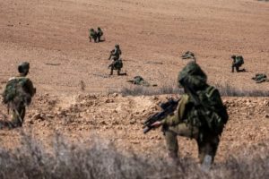 Izraeli katonák 2023. október 10-én a Gázai övezettel határos Kfar Aza kibuc területén.