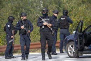Georgi Licovszki / EPA / MTI Koszovói rendőrök egy ellenőrző pontnál az észak-koszovói Banjska határában 2023. szeptember 27-én.