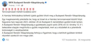 Szerdán ismét a Hamász felhívásához köthető újabb gyűlést tiltott meg a BRFK, magánszemély bejelentése alapján. A magánszemély a II. kerületben kívánta megszervezni a gyűlést az Izrael és a Hamász terrorszervezet között folyó fegyveres harc kapcsán.