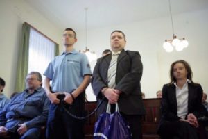 Deme Gábor (áll) és Kun Tamás (balról második) a bíróságon (Fotó: origo.hu)