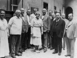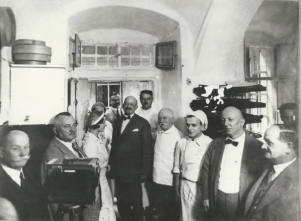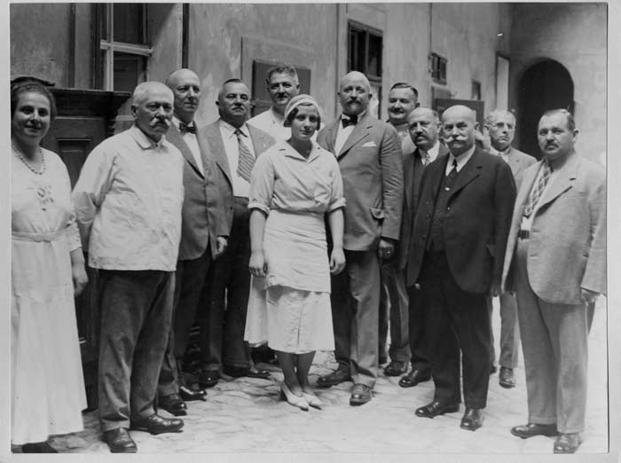 A képen balról jobbra láthatóak: Tóth Ferencné, Ruszwurm Vilmos, Rosta Sándor Ipartestületi jegyző, Wiener József cukrászmester,