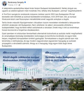 „A TomTom navigációs rendszerek műszeres mérései szerint 2022-ben Budapesten 9%-kal kevesebb időt töltöttek az autóval közlekedők torlódásban, mint 2019-ben. Sőt, az európai fővárosok közül csak Pozsonyban mérséklődtek ennél nagyobb arányban a dugók”
