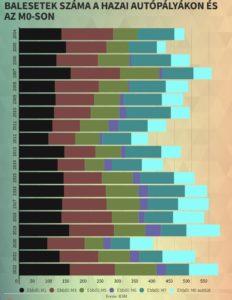 A statisztikai hivatal egyelőre csak a tavalyi évre vonatkozóan tette közzé, hogy melyik autópályán összességében hány darab személyi sérüléses közlekedési baleset történt. 2022-ben összesen 582 esetet regisztráltak a hazai sztrádákon,