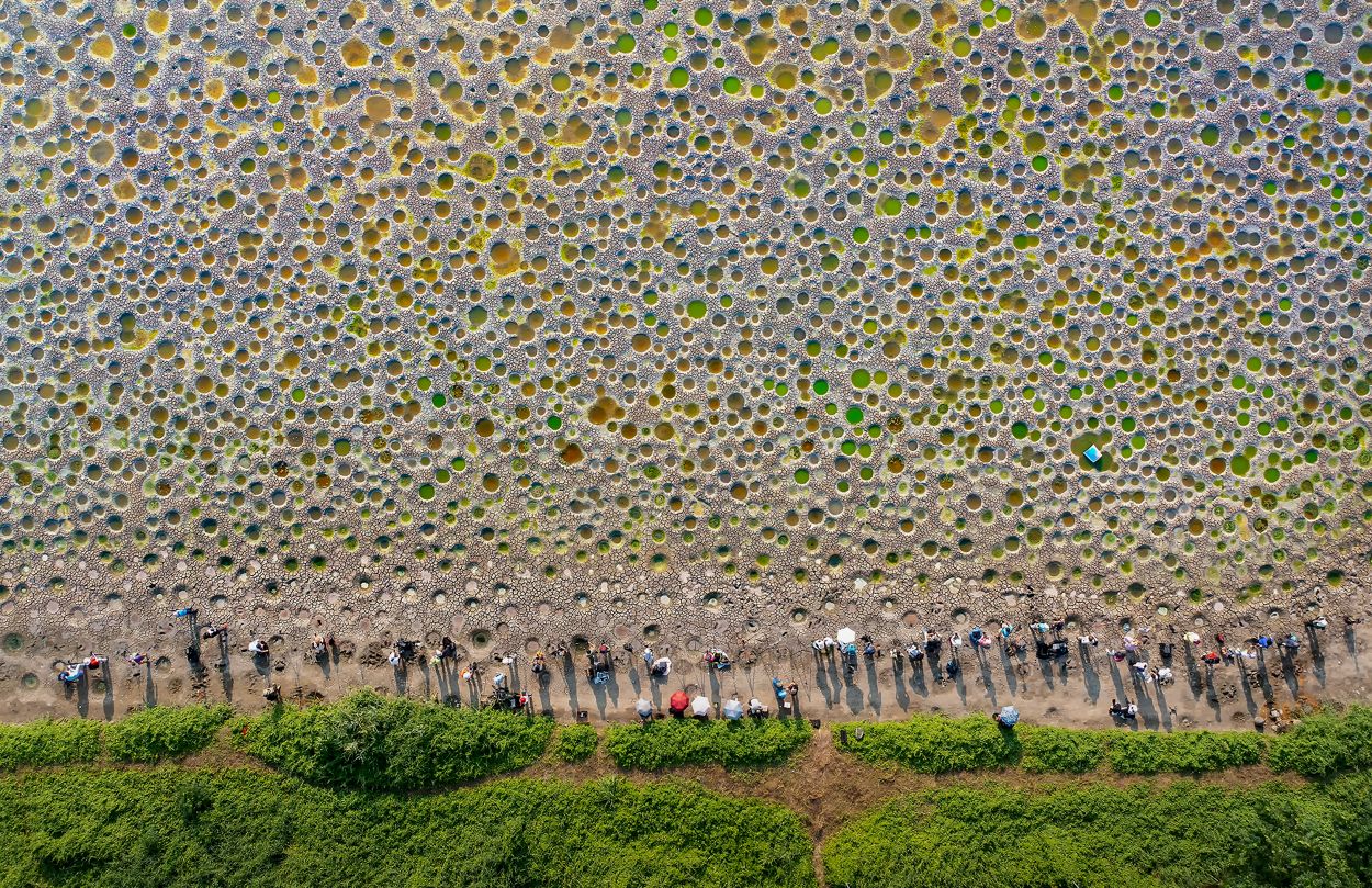 Egy kiszáradt tóban halak által ásott lyukak, egy sárga repcetábla közepén lévő település és az utódjait védő farkaspók is szerepel az 1951 óta minden évben meghirdetett The Nature Conservancy nyertes fotói között, írja a CNN.