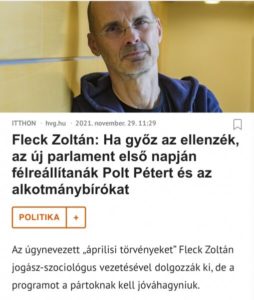 Az Eötvös Károly Közpolitikai Intézet (EKINT) az egyik fő aggódó a jogállamiság helyzetéért Magyarországon. A dolog pikantériája, hogy korábbi igazgatójuk, a posztkommunista MSZP-vel is jó kapcsolatokat ápoló Fleck Zoltán szájából hangzott el: „nagy valószínűséggel egy ’22-es ellenzéki győzelem után időlegesen le kell mondanunk a jogállam tiszta érvényesüléséről. De ez soha nem volt másként rendszerváltáskor, nagy forradalmak után”. „Nem állítjuk, hogy ez az egyetlen lehetőség, de ha ezt választja az ellenzék, akkor mérlegelniük kell, hogy ez egy olyan helyzet amiben kormányozni tudnak, vagy meg kell lépniük azt, hogy bizonyos szabályokat, bizonyos feltételek mellett meg kell változtatni, ami mellé pedig legitimációs érveket fogunk gyűjteni” – érvelt akkor jogszociológus.