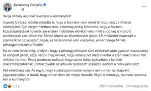 Erre kapta fel a fejét Varga Mihály, aki az alábbiakat írta a Facebookon: