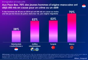 A kutatások azt mutatják, hogy a Hollandiában élő, harmincéves marokkói származású fiatalok 70%-a már legalább egyszer érintett volt bűncselekményben vagy vétségben.