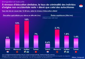Ezek az adatok azt mutatják, hogy az Afrikából származó lakosság riasztóan felülreprezentált a bűncselekményekben és bűncselekményekben, és a gyanúsítottak aránya 4-5-ször magasabb, mint a „bennszülött” hollandoké.