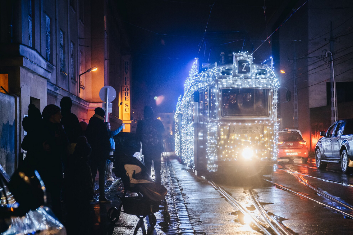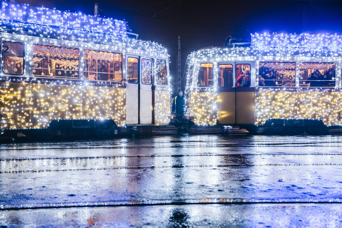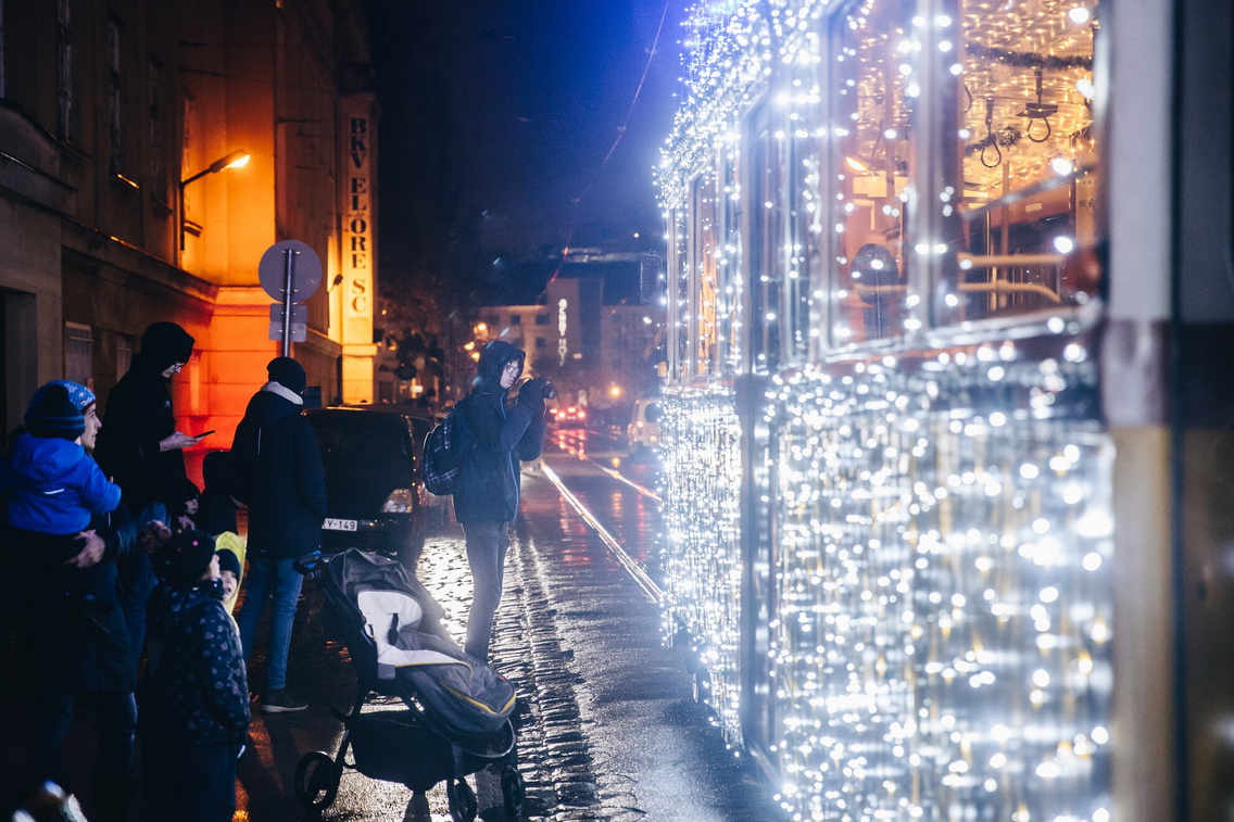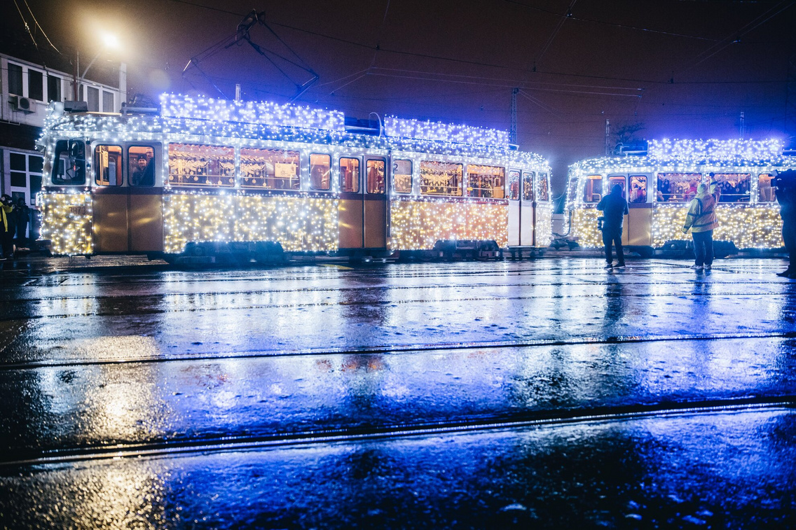 A járműveket több mint százan díszítették az elmúlt hetekben a kocsiszínekben és a buszgarázsban. Az ünnepi dísz fő alkotóelemei a kültéri LED-szalagok, füzérek és hálók összesen több mint 5 kilométer hosszúak, és több mint 140 ezer energiatakarékos LED világít bennük. A modern, környezetbarát LED-égők meleg fényükkel nemcsak az ünnepek meghittségét erősítik, hanem alacsony energiafogyasztásukkal és hosszú élettartamukkal csökkentik a BKV ökológiai lábnyomát is. A KCSV-7, a Tátra és a Ganz-csuklós villamosokon ünnepi fényt kaptak az áramszedők is.