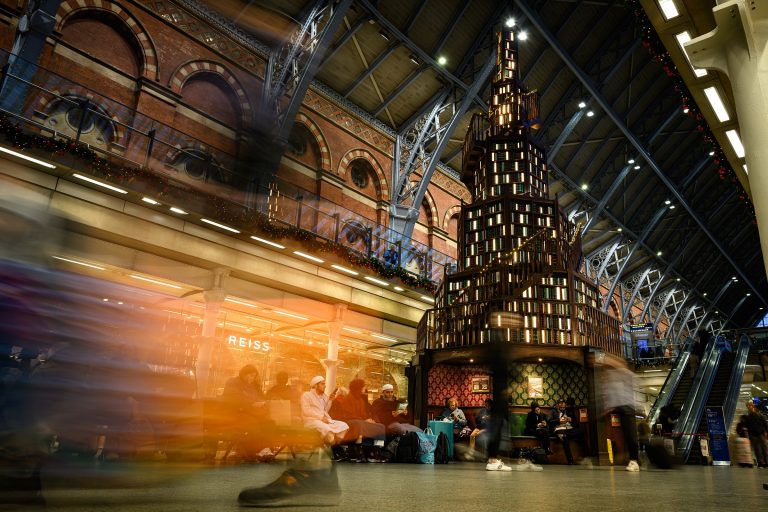 Az Egyesült Királyság 12. legforgalmasabb vonatpályaudvara a londoni St. Pancras, évente közel 19 millióan fordulnak meg a peronok környékén. Természetesen az ünnepekhez közeledve kicsinosították az alapvetően is igen hangulatos forgalmi csomópontot, fenyőfájuk híre azonban túlnőtt Londonon.