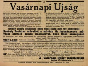 A Vasárnapi Újság előfizetői felhívása a Mohácsi Újság hasábjain 1913-ból
