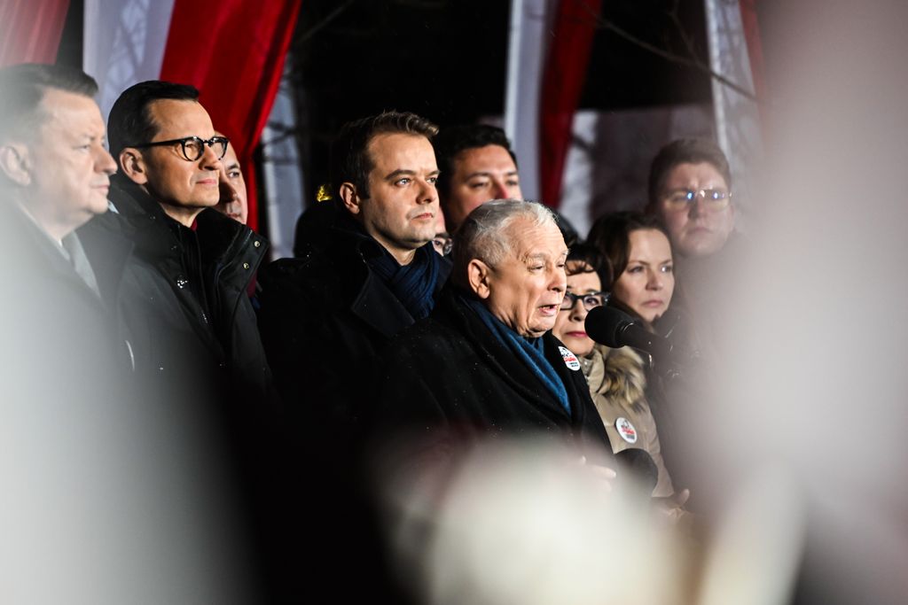 Hozzátette: „az a szándéka Tusk csapatának, hogy ne a lengyel, hanem a német államiságot emeljék fel. Mi megvédjük az európai nemzeteket a német imperalizmus újrahódításától”. „Lengyelország szabadsága a tét” – szögezte le.
