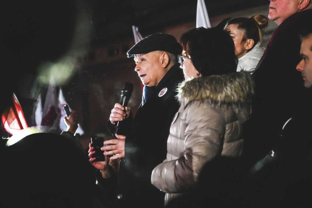 Hozzátette: „az a szándéka Tusk csapatának, hogy ne a lengyel, hanem a német államiságot emeljék fel. Mi megvédjük az európai nemzeteket a német imperalizmus újrahódításától”. „Lengyelország szabadsága a tét” – szögezte le.