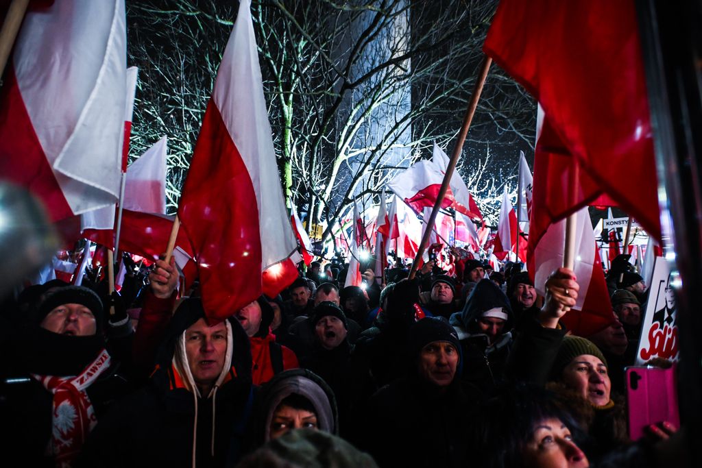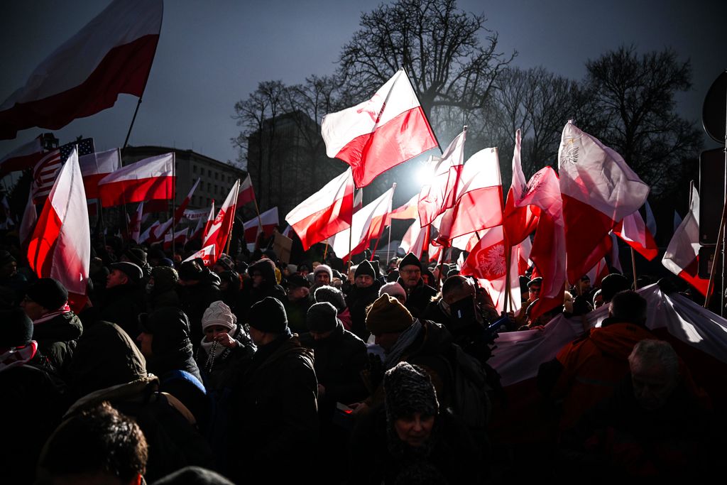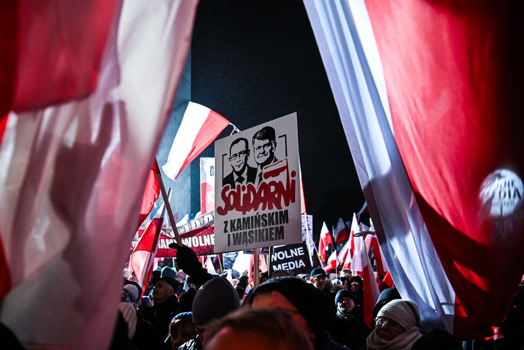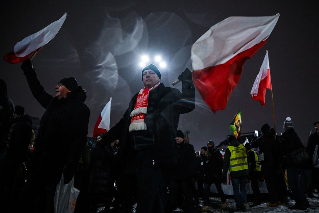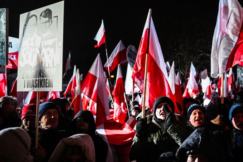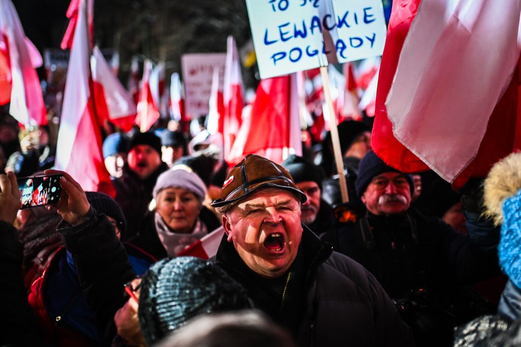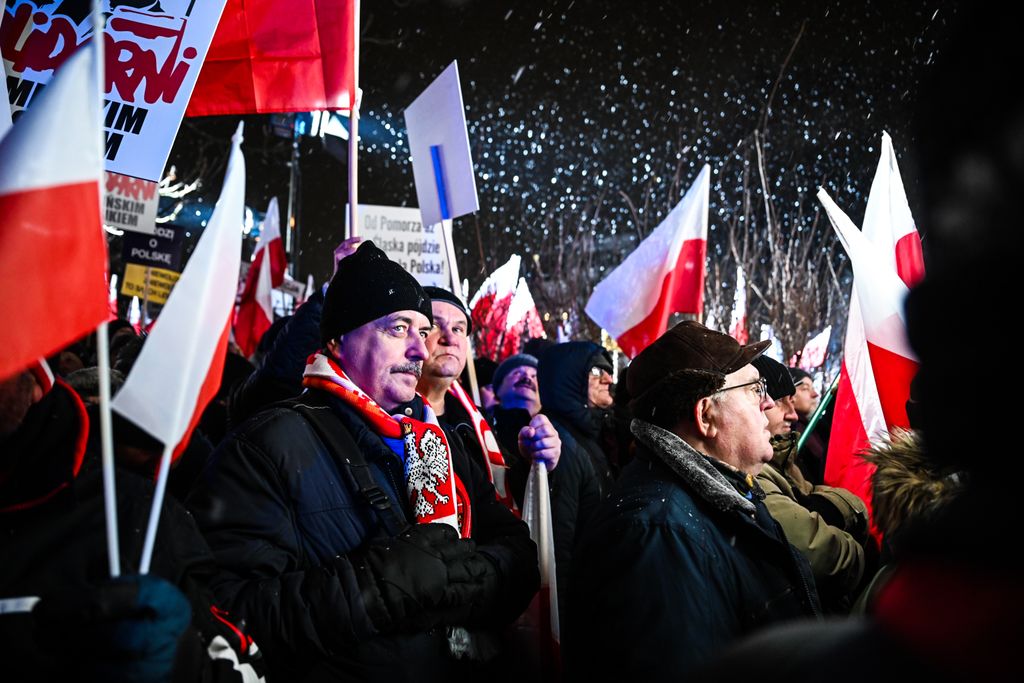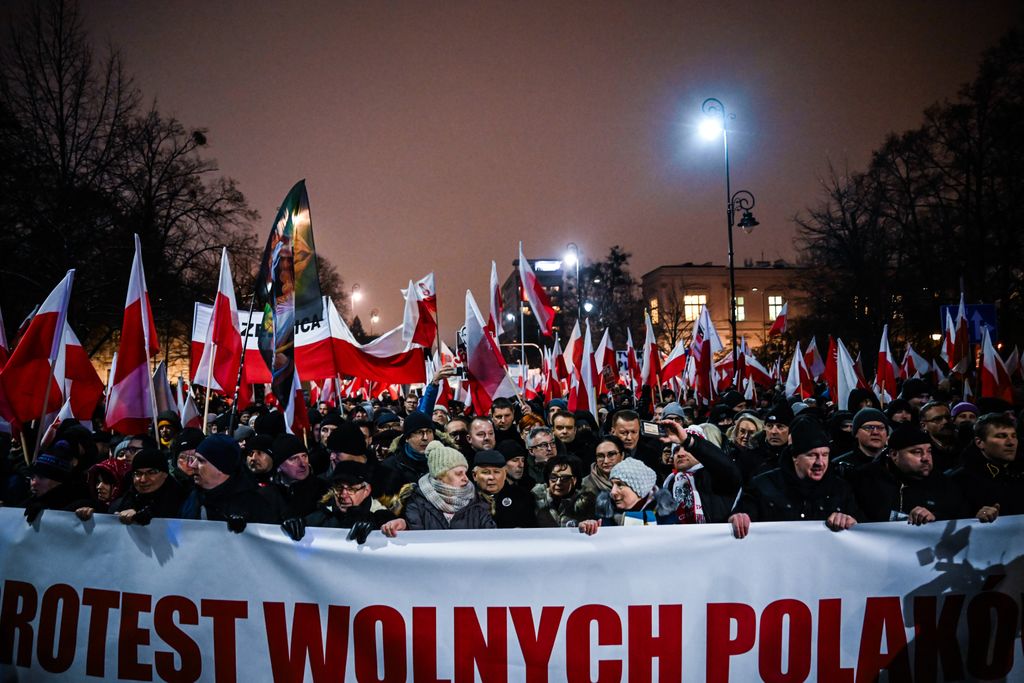 A hideg idő ellenére legkevesebb kétszázezren gyűltek össze Lengyelországban a varsói parlament (szejm) előtt, hogy tiltakozzanak Donald Tusk tisztogatásai ellen. Az emberek rendkívül feszült állapotban vannak, és hangosan skandálnak különféle szlogeneket. A megmozdulás azóta már nevet is kapott: a szabad lengyelek tüntetéseként emlegetik. A demonstrálók kifogásolják a köztévé és a közrádió jogellenes megszállását. A tömeg az igazságtalanul bebörtönzött politikai foglyok, Mariusz Kaminski volt belügyminiszter és Maciej Wasik volt belügyminiszter-helyettes felszabadítását követeli. „Megvédjük Lengyelországot!” – hallatszik. A Magyar Nemzetnek a tüntetés résztvevői közül többen is nyilatkoztak.