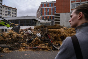 Amikor a traktorok a regionális hatóság épületéhez értek, több tucatnyi trélernyi rothadó gyümölcsöt, szénát és trágyát borítottak ki közvetlenül előtte.