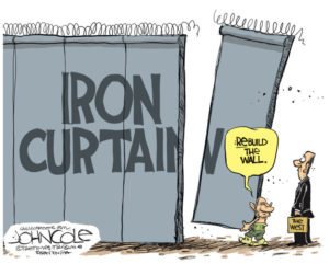 1989-ben a Nyugat a demokrácia diadalát ünnepelte a szovjet Vasfüggöny lebontásával. 35 évvel később ugyanazokból a kényelmes nyugati székekből „politikusok” egy új nemzedéke brüsszeli vasfüggönyt épít.