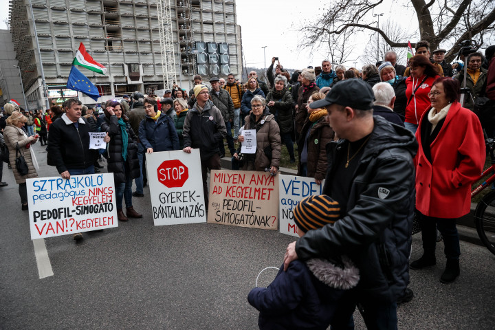 A résztvevők Novák Katalin köztársasági elnök kegyelmi döntése ellen tiltakoztak, követelve a köztársasági elnök lemondását. A Belügyminisztériumnál a baloldali pártok mellett megjelentek azok a civil szervezetek is, amelyek nemrég még a pedagógusok béremeléséért tüntettek.
