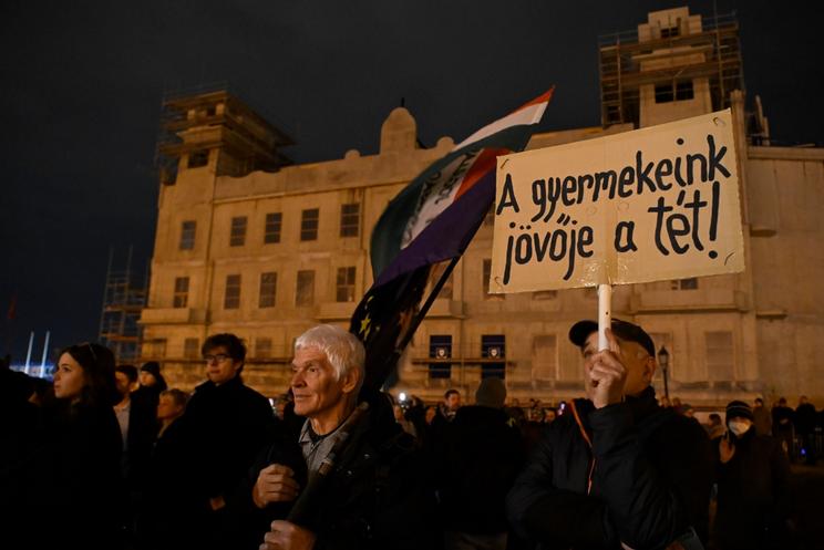 Néhány száz ember tüntetett a Sándor palota előtt