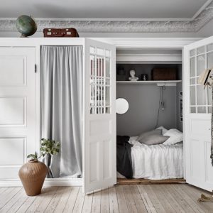 Ez a zárt ágy tehát kiválthatja a hálószobát, elegáns megoldás a magánélet megteremtésére egy nagyon kis lakásban.