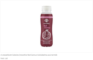 A Lidl kivonta a forgalomból a Solevita Smoothie Red Genius Gránátalma-acai termék egyik szériáját. Az üzletlánc arra kéri a vásárlókat, hogy az italt ne fogyasszák el.