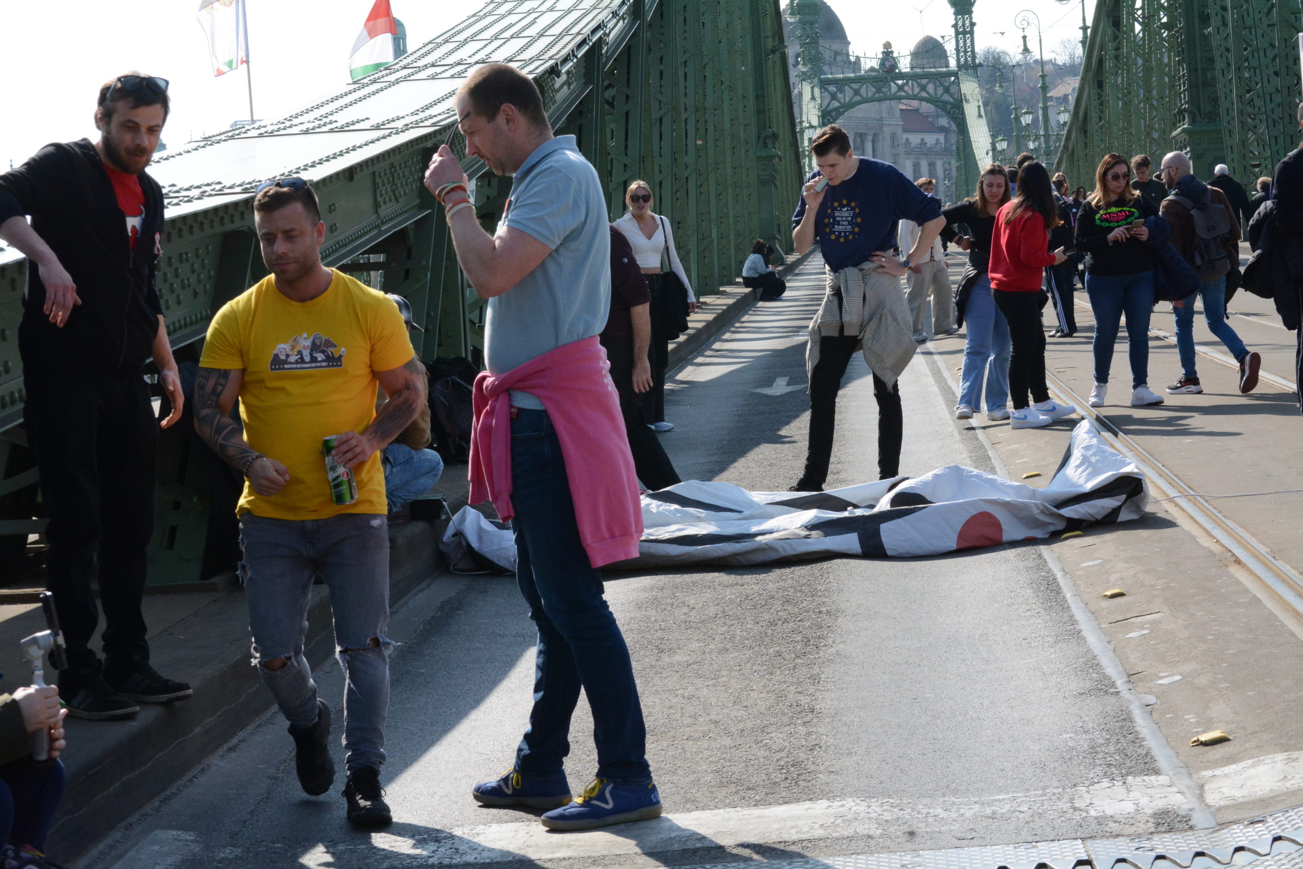 Miközben az emberek gyülekeztek, volt egy apró zavaró momentum. A botrányairól elhíresült Szabó Bálint, volt szegedi önkormányzati képviselő, aki most éppen főpolgármester jelölt akar lenni, szintén megjelent a Nemzeti Múzeumnál, ám valamilyen ok miatt a biztonsági őrök kicipelték. Szó szerint kicipelték, ugyanis