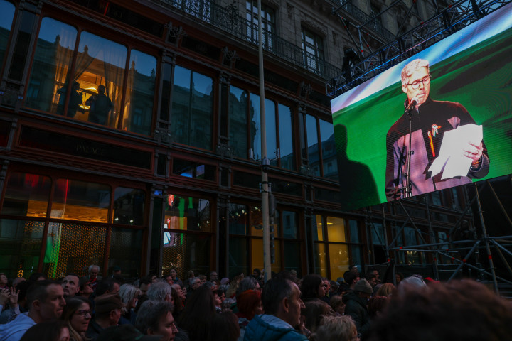 Karácsony Gergely beszéde következett, aki azzal kezdte, hogy „Jó estét Magyarország! Jó estét Budapest! Jó estét bátor magyarok!”