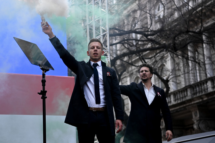 A Momentum elnöke, Donáth Anna azt mondta: „Totális valósághamisítás. Üres magyarkodás. Kocsmai kardcsörtetés. Nem Petőfi, nem Széchenyi és nem Kossuth állt ma a Nemzeti Múzeum lépcsőjén, hanem egy gátlástalan és szégyentelen megafonos, aki el akarja hitetni, hogy ő az új Petőfi.”