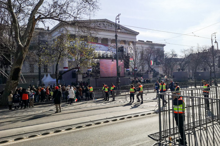 A Fidesz, miután lemondták a Békemenetet, arra való hivatkozással, hogy ezt nem a nemzeti ünnepen kell megejteni, a Magyar Nemzeti Múzeum elé hirdetett ünnepi gyűlést. A rendezvényen fél 11-től Orbán Viktor beszélt. Az ünnepségre a Kálvin tér és az Astoria felől csak kordonokon keresztül lehetett bejutni, a biztonsági őrök mindenki táskájába belenéztek, a ruházatot is átvizsgálták. Közvetlenül a Nemzeti Múzeum előtt, ahol Orbán Viktor beszélt, felállítottak egy belső kordont is, ide még egy biztonsági ellenőrzés után lehetett csak bejutni.