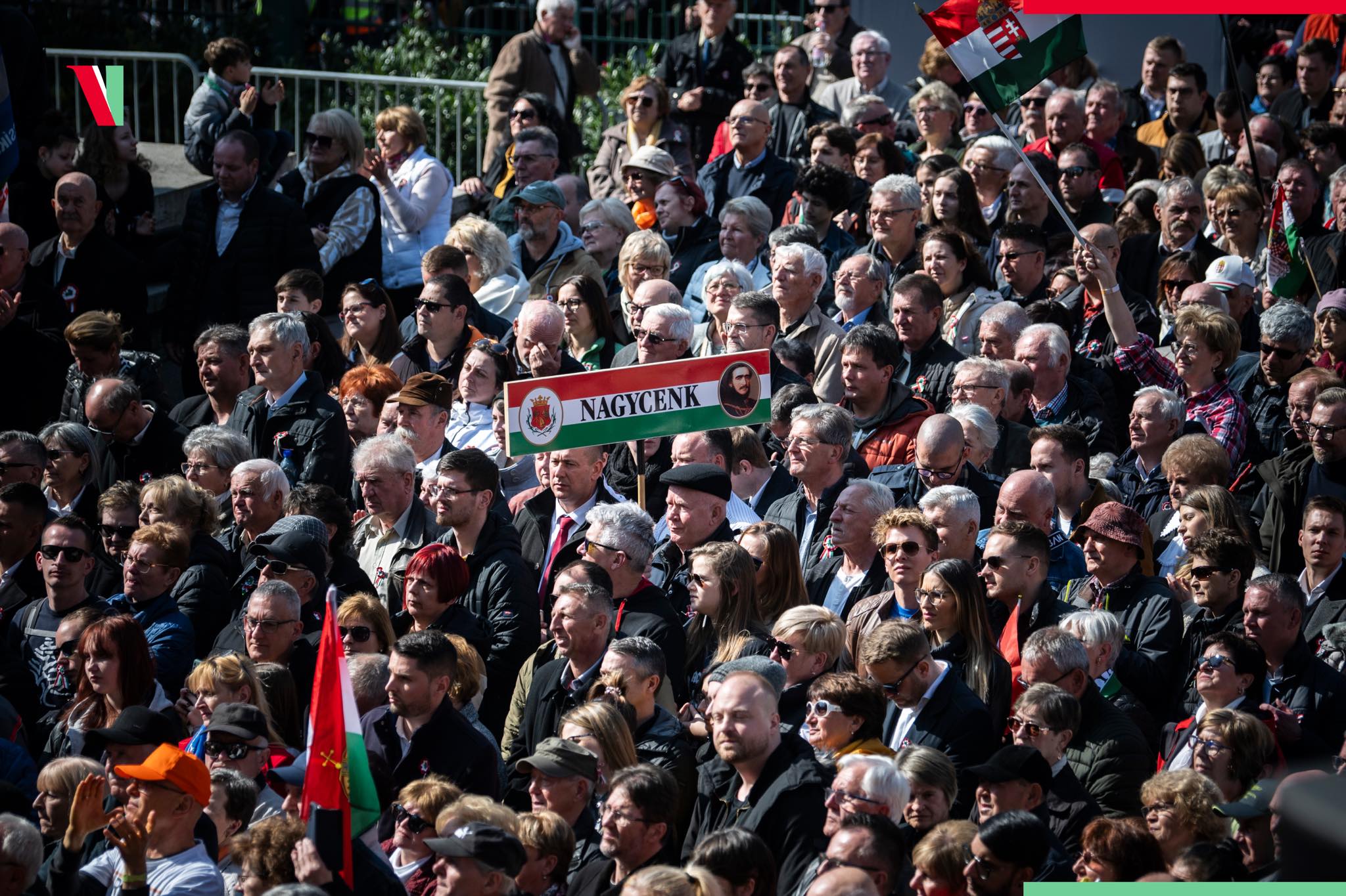 A következő színpadra lépő Nagy Ervin volt, aki elszavalta a Nemzeti dalt Magyar Péter zászlóbontásán.