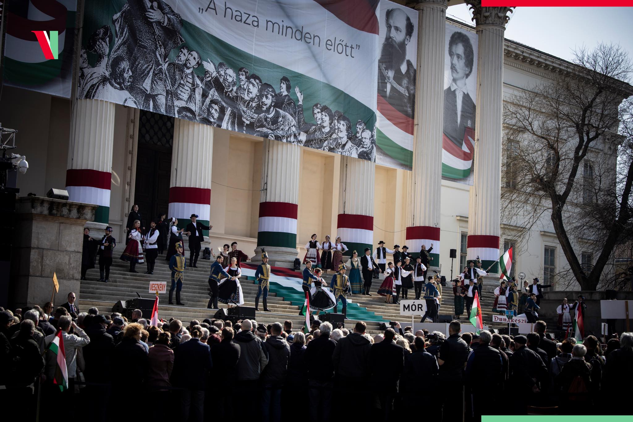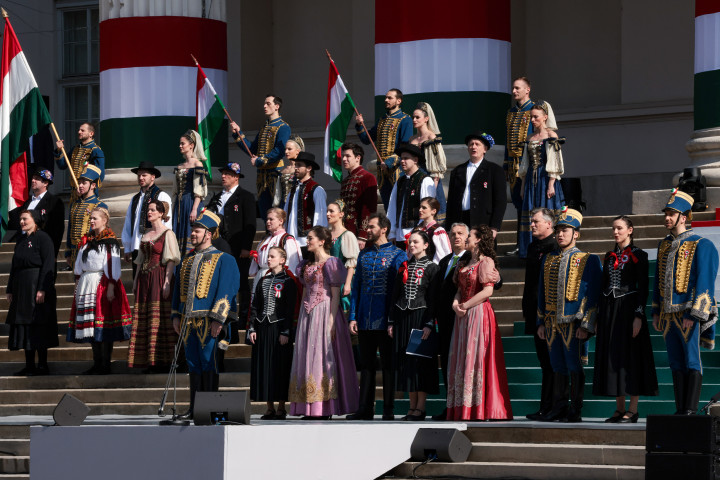 A miniszterelnök beszéde végén az Operettszínház színészeivel elénekelte a Kossuth-nótát.