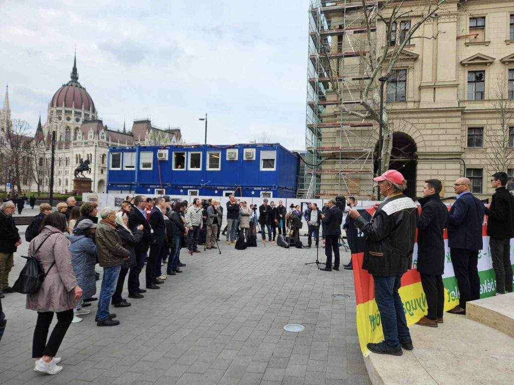 A Vértanúk terén tartott rendezvényt a német AfD, melynek küldöttsége Szerbiába tartott, az 1999-es NATO bombázás alkalmából rendezett megemlékezésre, és út közben álltak meg egy rövid időre Budapesten, hogy a Mi Hazánk képviselőivel találkozzanak.