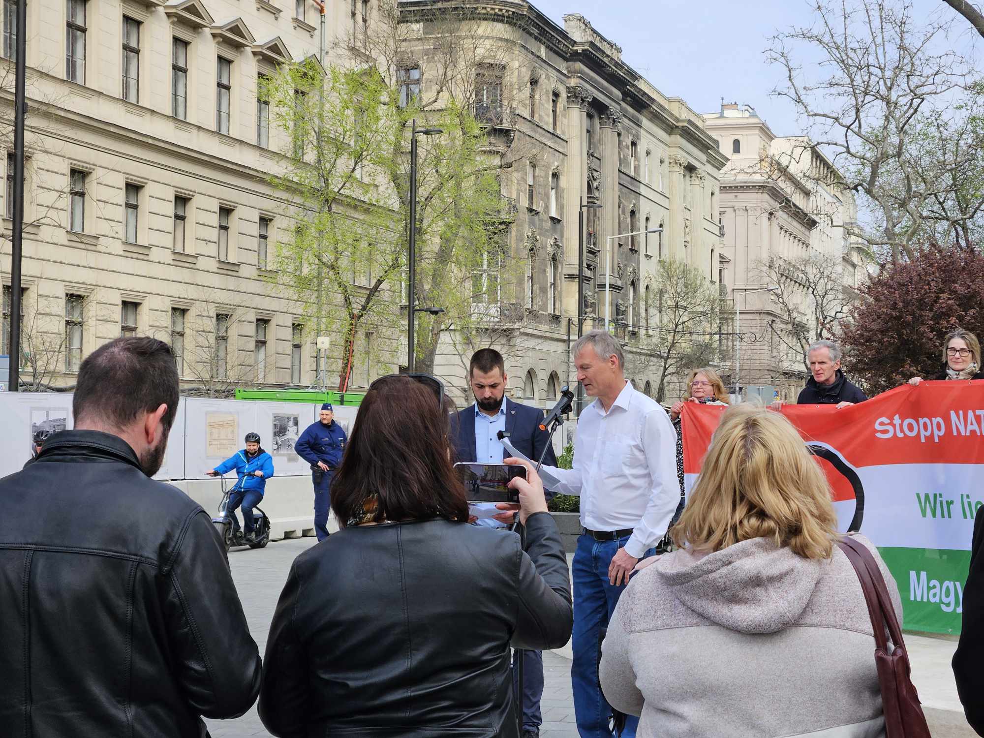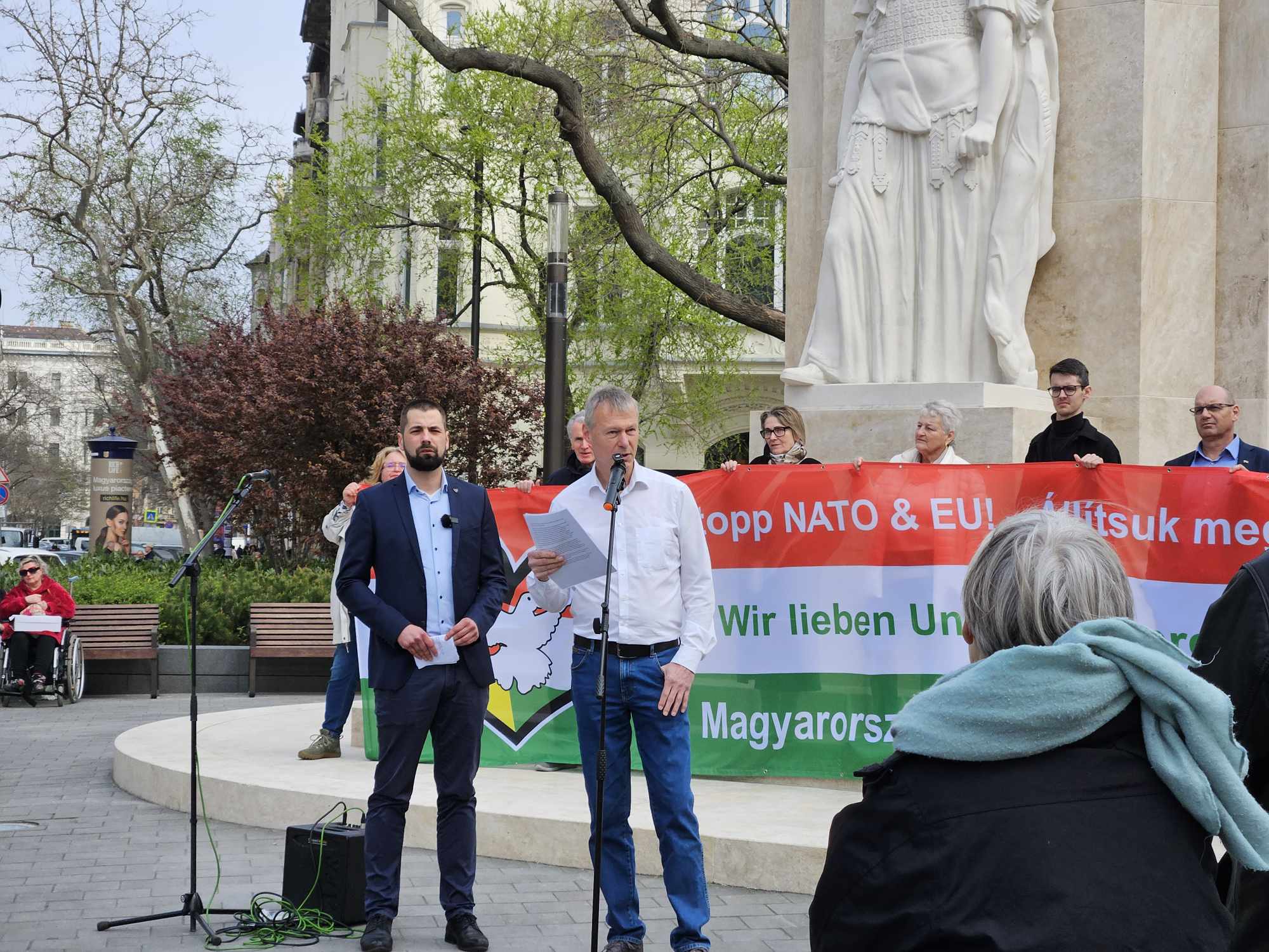 A Vértanúk terén tartott rendezvényt a német AfD, melynek küldöttsége Szerbiába tartott, az 1999-es NATO bombázás alkalmából rendezett megemlékezésre, és út közben álltak meg egy rövid időre Budapesten, hogy a Mi Hazánk képviselőivel találkozzanak.