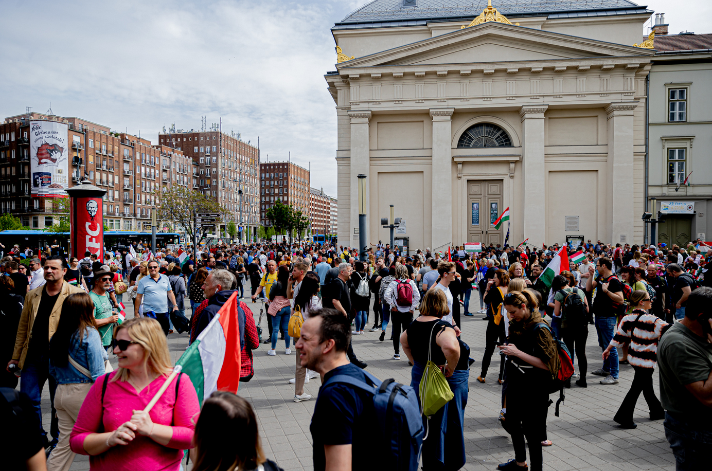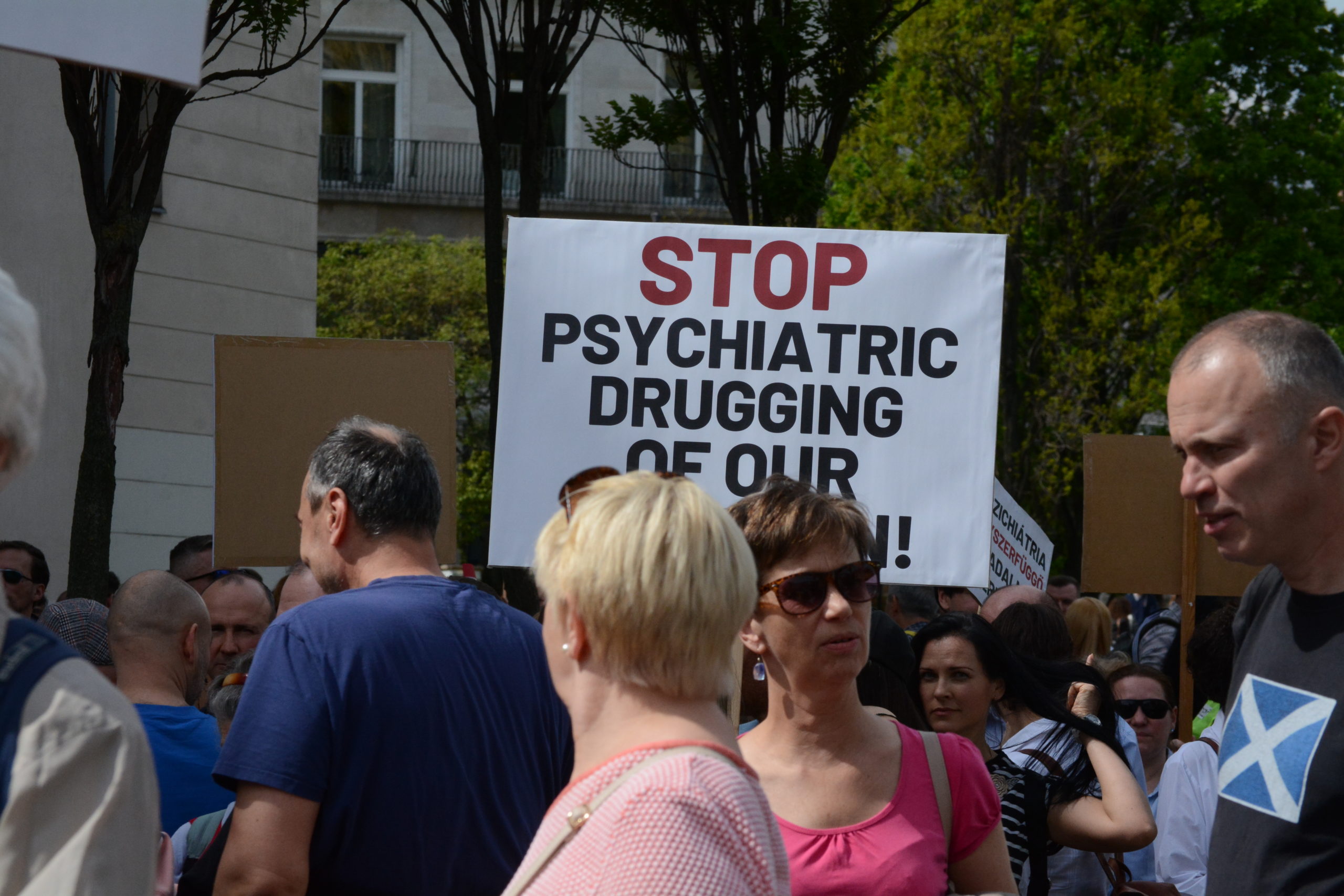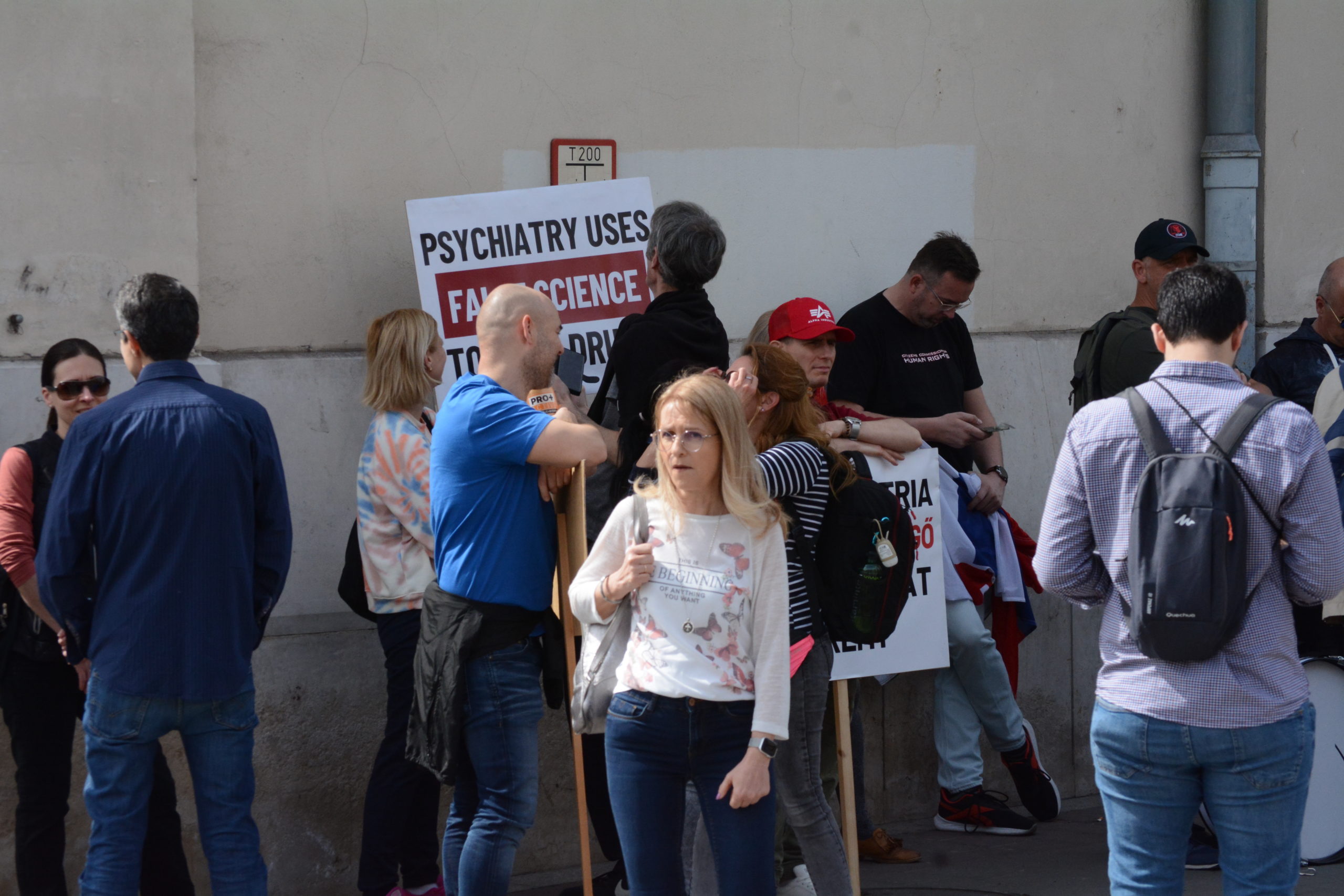 A Magyar Péter által meghirdetett tüntetésre túl korán érkezők kissé bizonytalanul bolyongtak, ugyanis a Deák téri templom oldalában éppen egy másik tüntetés zajlott. A szcientológus egyház hirdetett vonulásos tüntetést a nemzetközi pszichiátriai konferencia ellen.