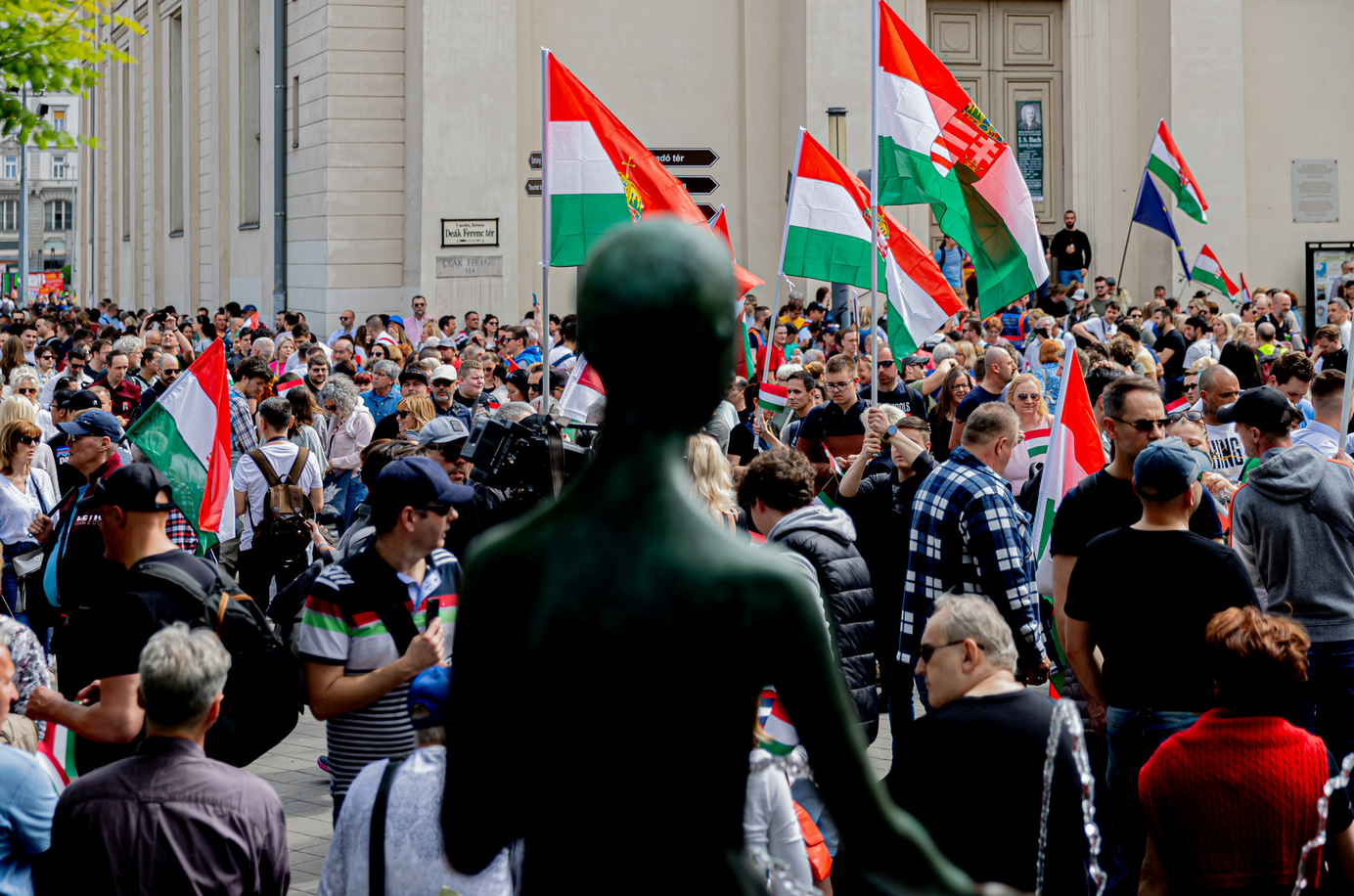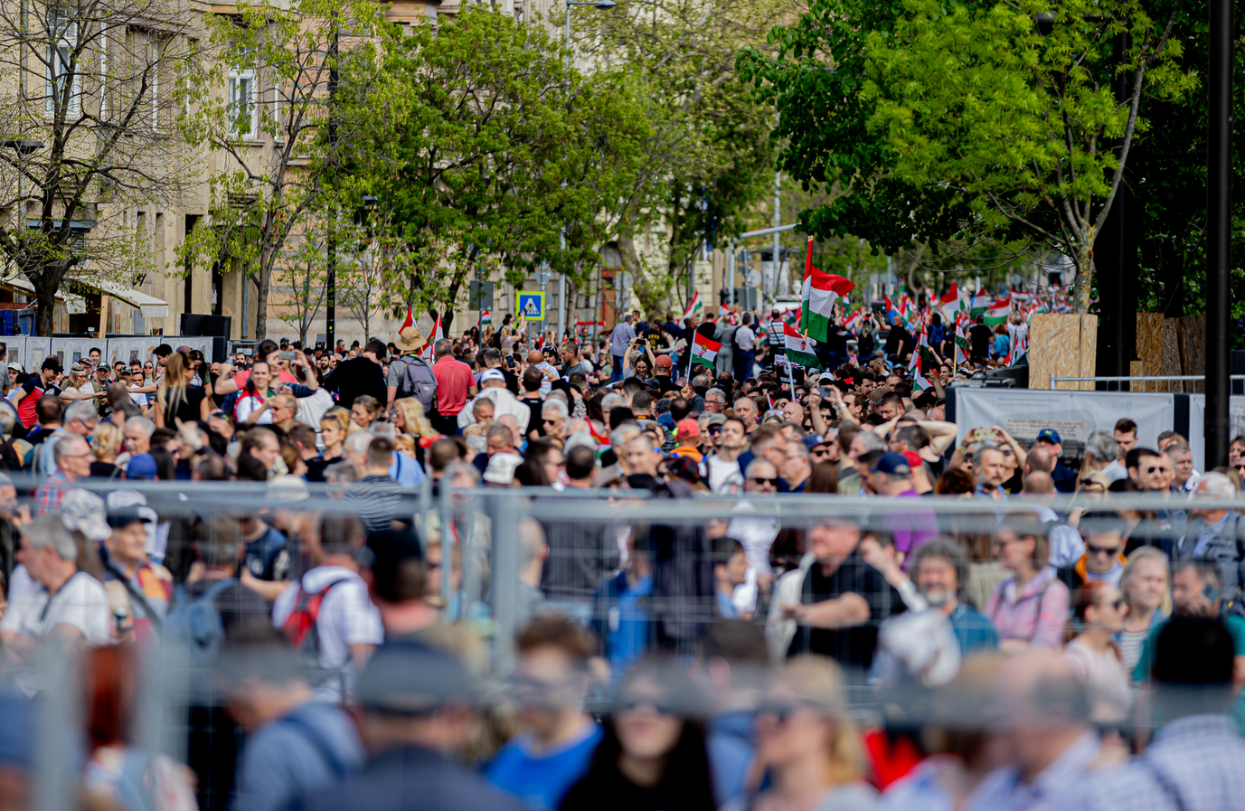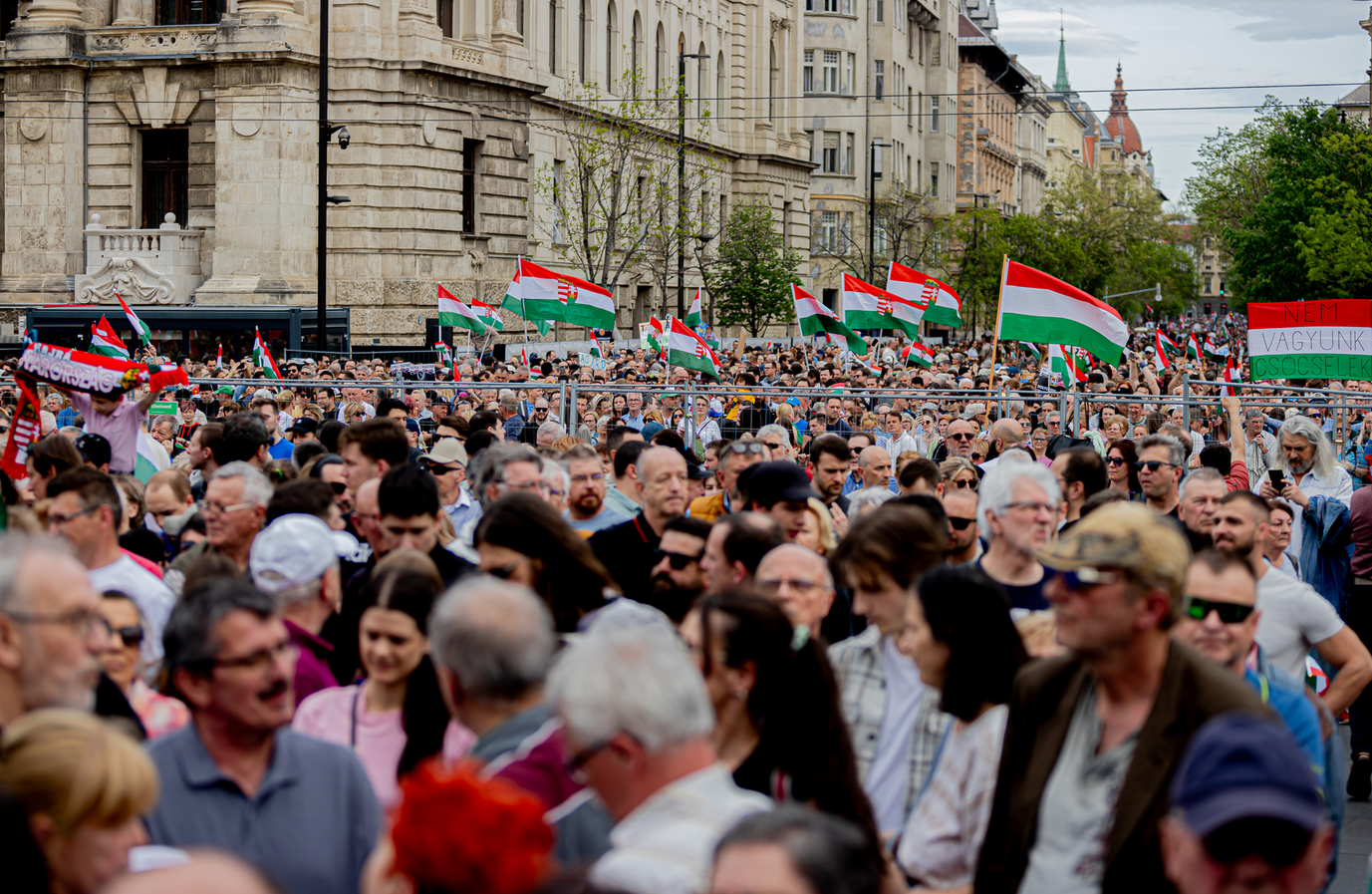 Időközben megérkezett a menet is, bár Magyar Péter kissé feszülten jegyezte meg, hogy rossz utcába vezette őket valaki, és megkérdezte, vajon ki volt az a f@sz.