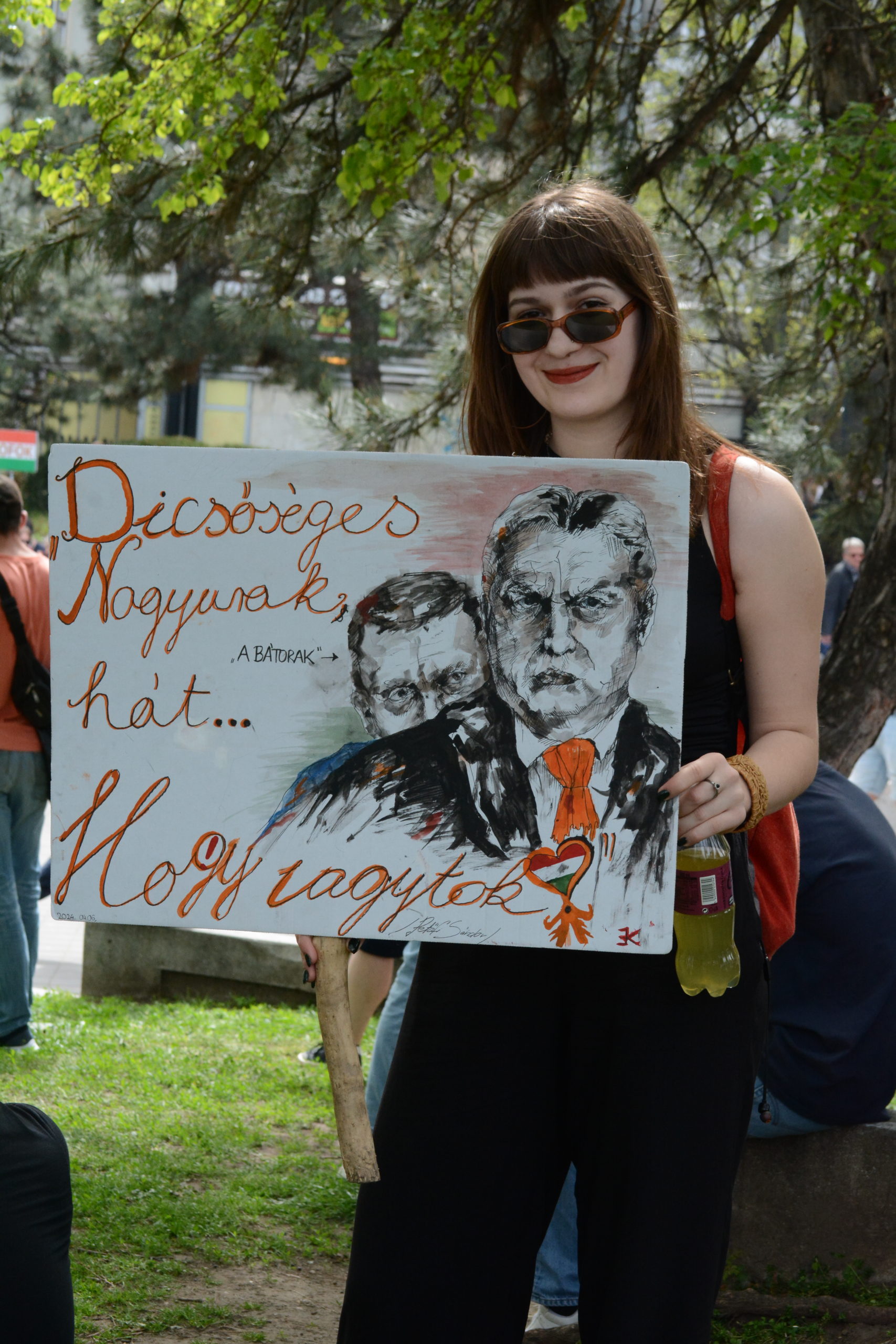 Fél hat tájban már elkezdett kiürülni a Kossuth tér, bár tény, hogy Magyar beszéde alatt is jó páran elindultak hazafelé. Eközben Magyar Péter a színpadról a demonstrálók közé ment, sokan gyülekeztek körülötte, hogy szelfizzenek egyet, vagy csak megérinthessék. Egy hölgy mellettünk sírva ment el, mert – ahogy panaszolta ismerősének – nem tudott kezet fogni Magyarral. A színpad mellett egy rendezői mellénybe öltözött nő Talpra magyarok-matricát osztogatott, vélhetően máshol is lehetett ilyen matricához jutni.
