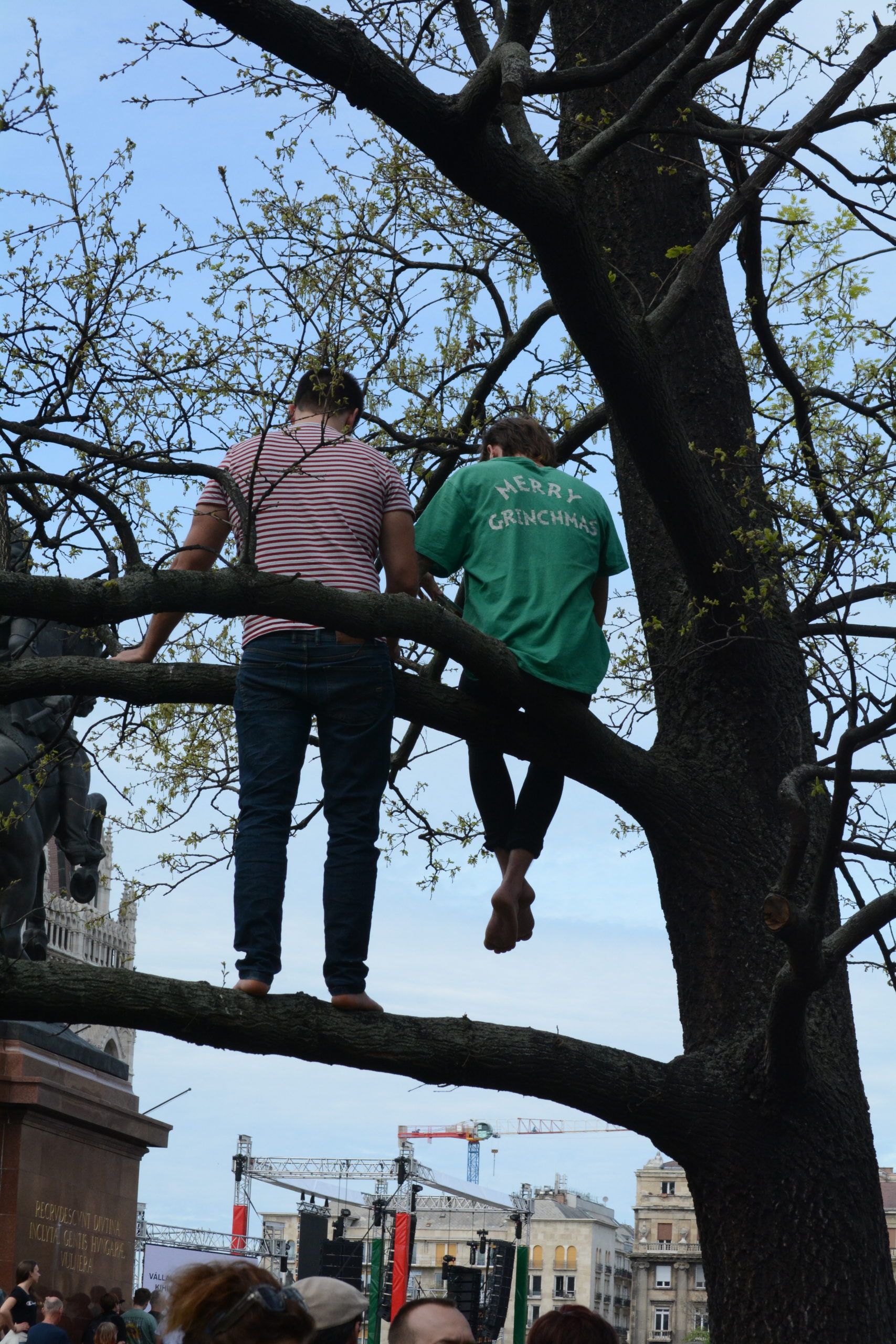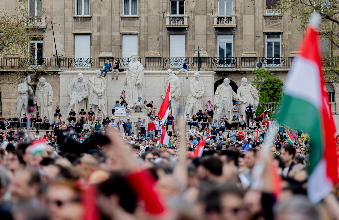 Három után nem sokkal az egyik szervező arról beszélt a színpadon, hogy a menet vége még a Bajcsy-Zsilinszky úton van, hozzájuk próbálják eljuttatni azt az üzenetet, hogy már csak az oldalsó utcákból közelítsék meg a teret. Azt is kérte a tüntetőktől, hogy ne másszanak a szobrokra, de ez a kérés nem talált meghallgatásra, mert a tér összes szobrán ücsörögtek és néhányan ittak, ettek is.
