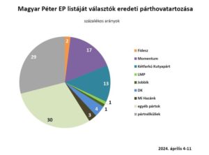 „Ha Magyar Péter jelenlegi, a népesség 11 százalékát kitevő tábornak összetételét nézzük, akkor annak harmada feltehetően eredeti Magyar Péter hívő, hiszen abból a sorból, ahol ő nem szerepelt, az „egyéb pártot” választották, és valószínűsíthetjük, hogy zömmel rá gondoltak. Támogatóinak nagyjából harmadát teszik ki a pártnélküliek, közel kéttizedét a Momentumosok, bő egytizedét a Kutyapárt hívei” – jelezték.