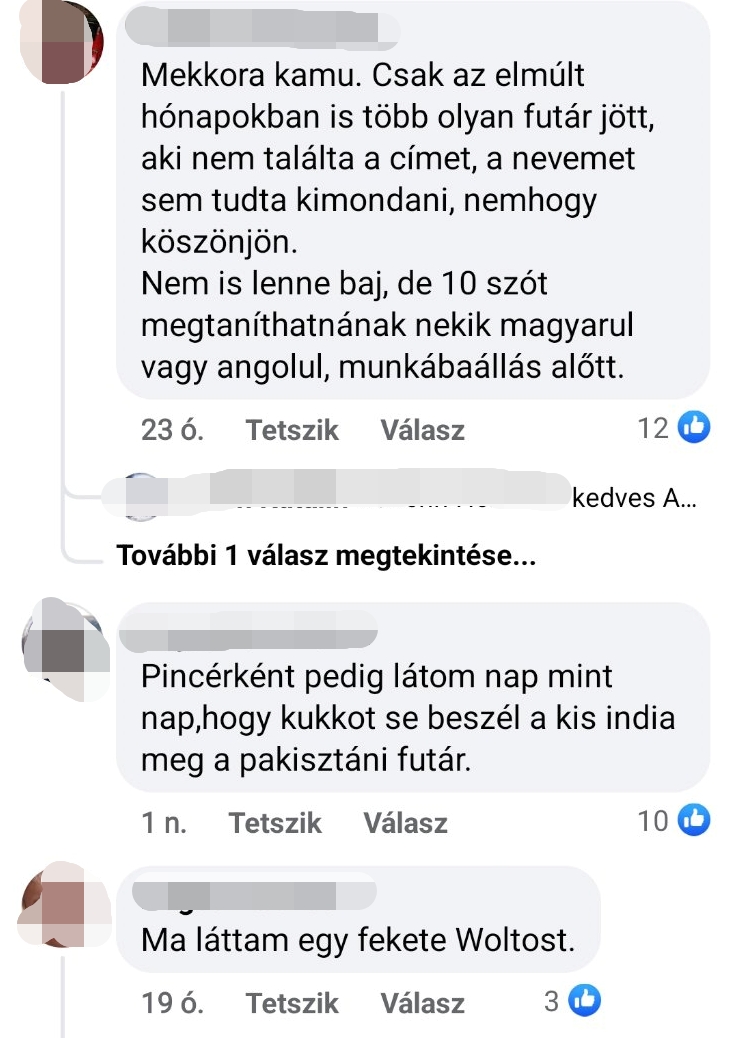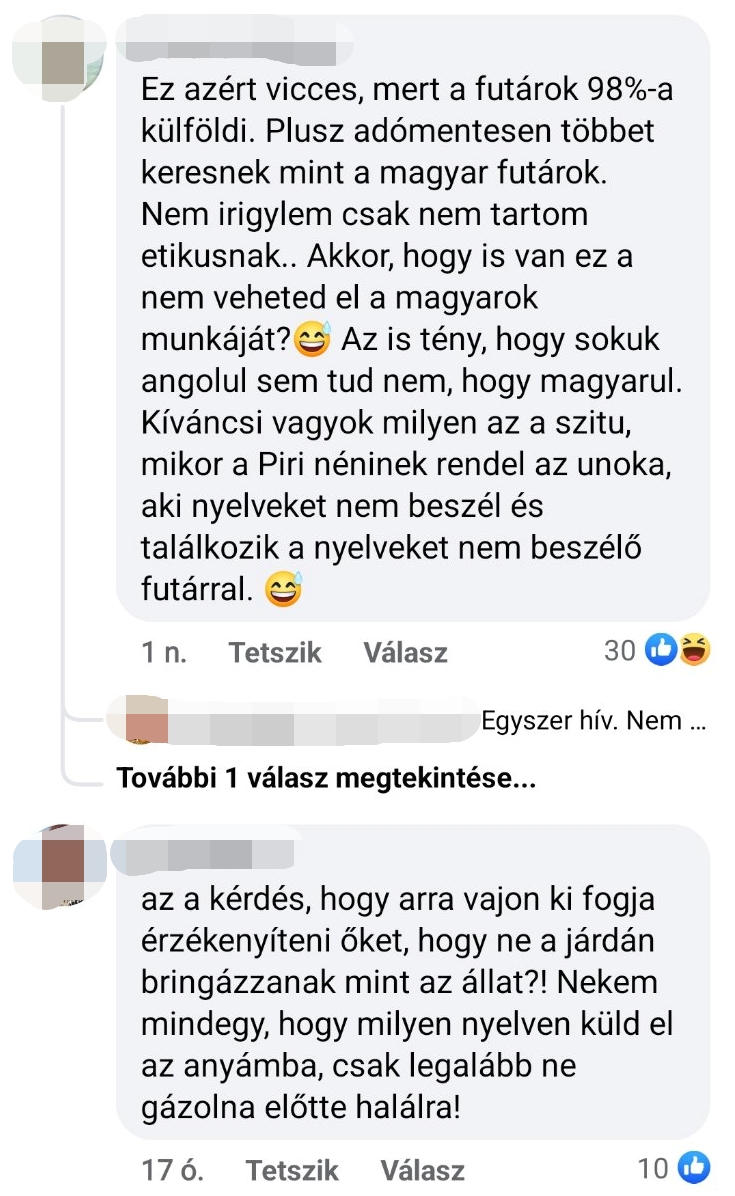 Az ételkiszállító vállalat válasza alapján ők egyáltalán nem alkalmaznak olyan futárokat, akik alig, vagy egyáltalán nem beszélik a magyar nyelvet.