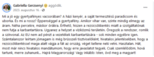 Magyar Péter és a Tisza Párt európai parlamenti listájának 6. helyezettje, Gerzsenyi Gabriella egy 2023-as posztjában vallotta be, hogy évekig fúrta a magyarországi rezsicsökkentést.