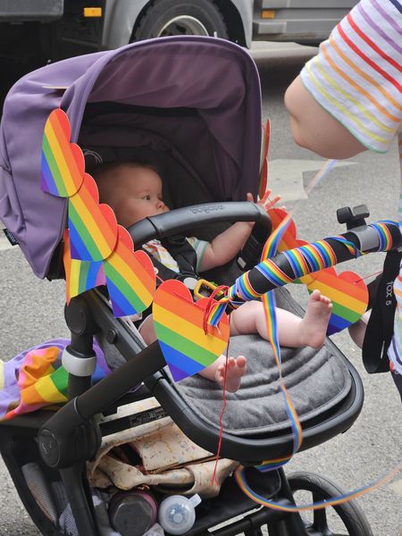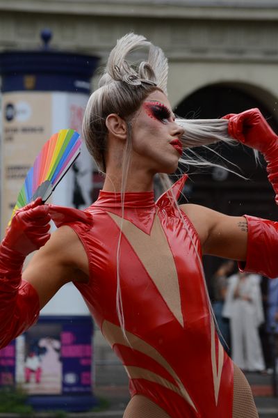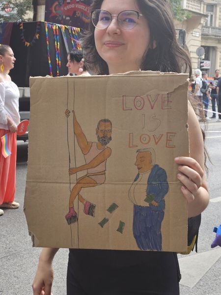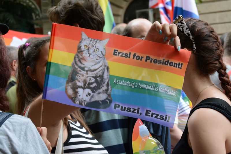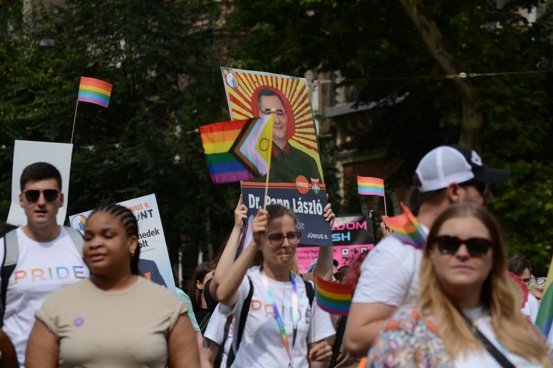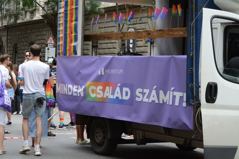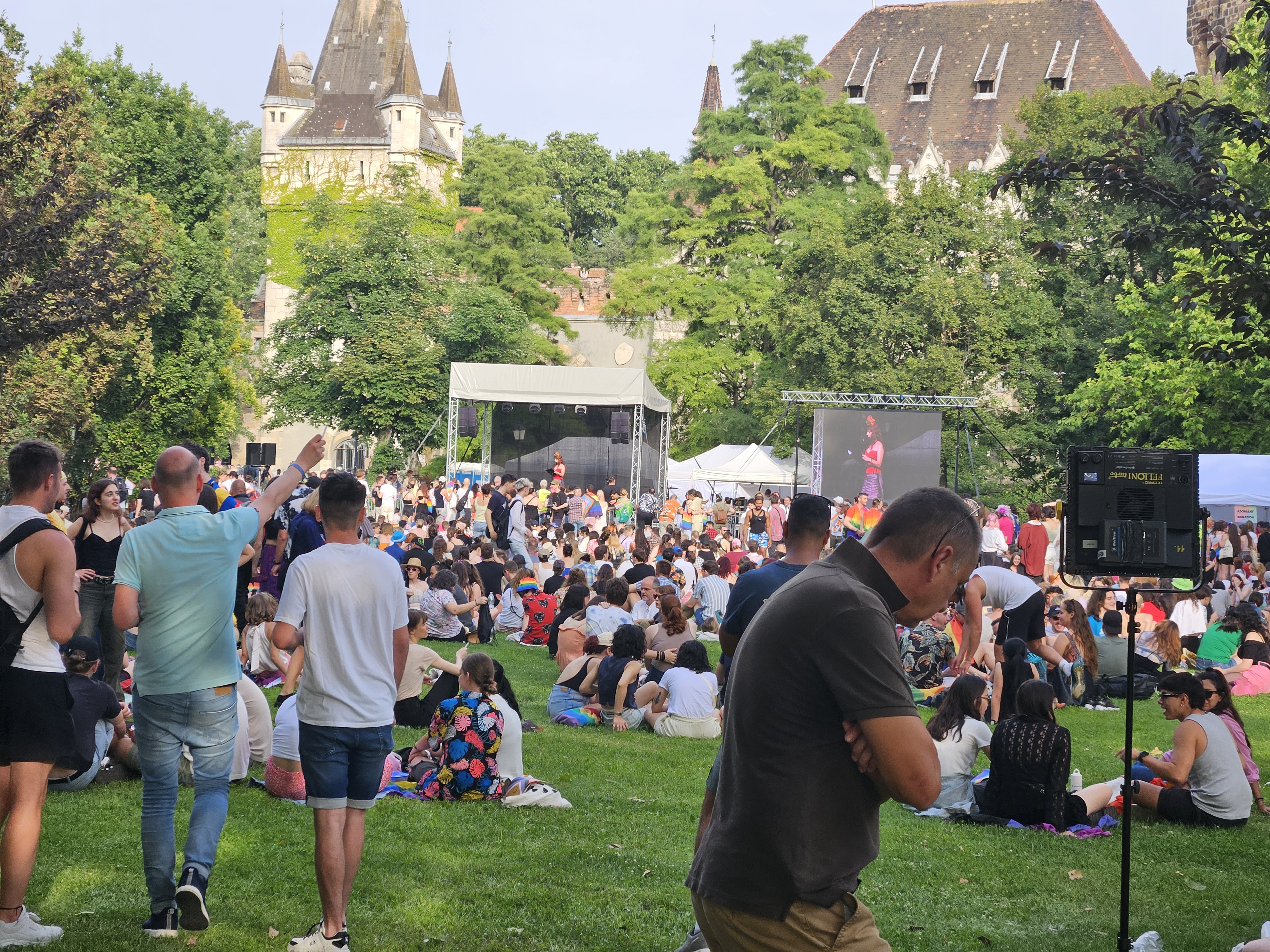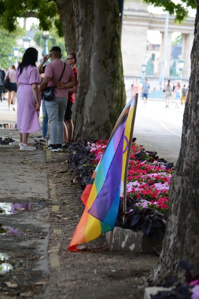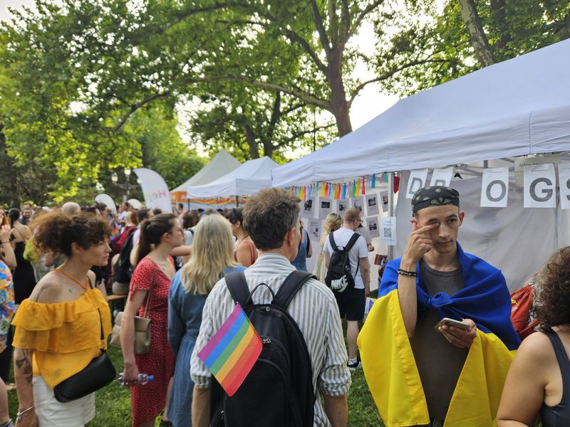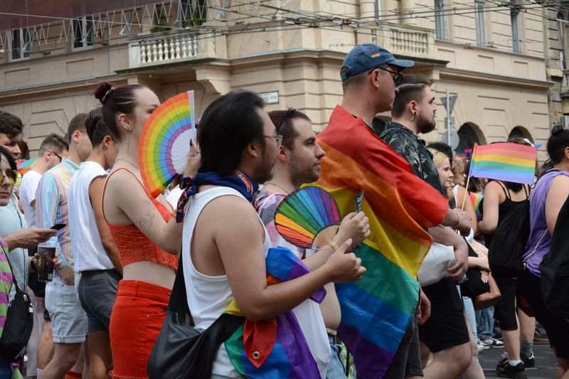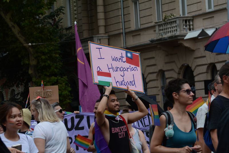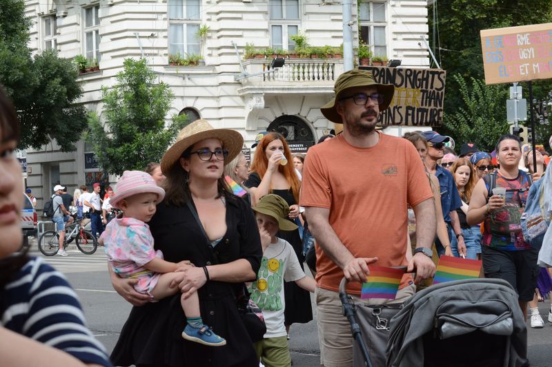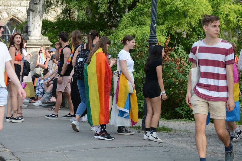 Az árusok is megtalálták a piaci rést, aki Magyar Péter tüntetésein magyar zászlót, a Mi Hazánkos tüntetésen Nagy Magyarországos vagy árpádsávos termékeket árult, az most megjelent a szivárványos kollekcióval. A kétezer forintot kóstáló szivárványos legyezőkre nagy volt a kereslet a kánikulában.