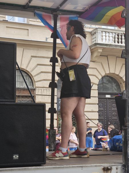 Erdős Erik Robin, transzjogi aktivista és a Magyar Transz Pride egyik szervezője volt a következő felszólaló. Elmondta, hogy úgy látja, a transz emberek Magyarországon folyamatosan nehézségekbe ütköznek „akár a könyvtárban, akár a trafikban, akár a reptéren”. Mindez annak köszönhető, hogy a magyar törvények nem engedik nekik az új nemüket és nevüket a hivatalos irataikra ráírni.
