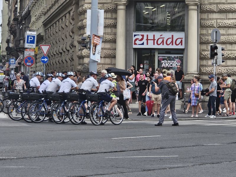 A Podmaniczky utca árnyékában gyülekezett a menetelő tömeg, szerencsére a boltok is nyitva voltak, így nem jelentett gondot hűsítőt venni.