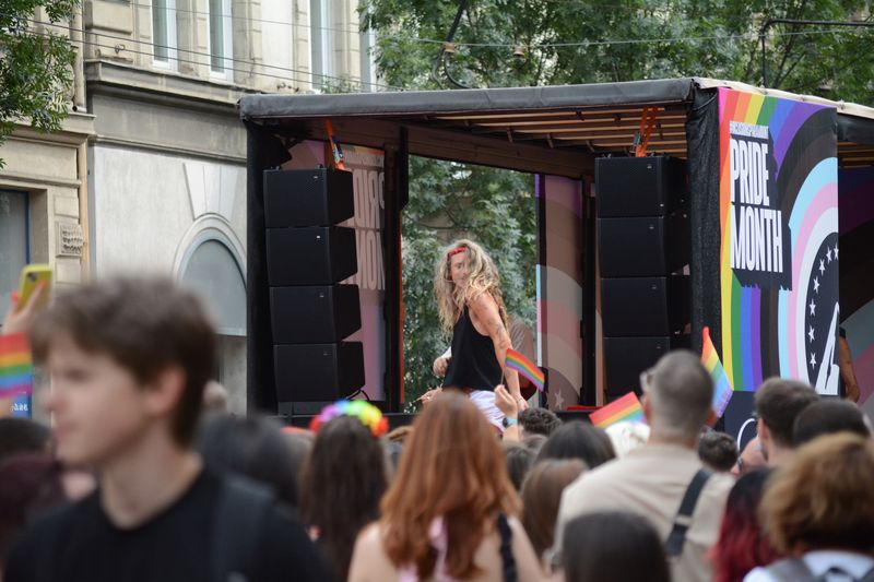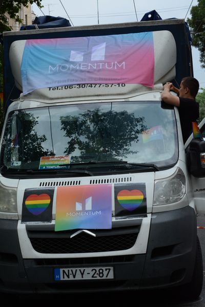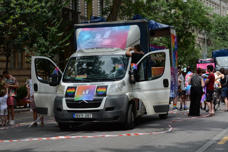 A tervezett három órai induláshoz képest némi késéssel indult el a Pride menete, amit Hegedűs Máté és Tóth Laura indított a Podmaniczky utcából. A tömeg a preferált kamionok vagy kisteherautók után menetelt a zene ütemére.
