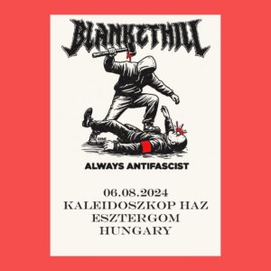 Az esztergomi Kaleidoszkóp Házban rendezik a Blanket Hill koncertjét. A luxemburgi antifa zenekar az eseményre készült plakátjával egyértelmű és erőszakos üzenetet fogalmazott meg, mely a tavaly februári támadásokra emlékeztet. A helyszín évek óta kap állami támogatást koncertszervezésre – írja a Magyar Jelen.