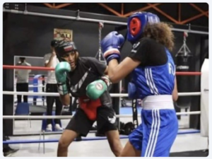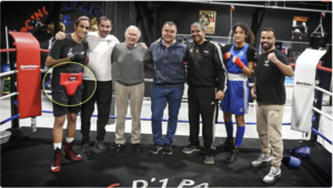 A képen látható: Khelif hat másik emberrel együtt, a bokszring közepén. A fotó a dél-franciaországi Tarbes egyik edzőtermében készült egy edzés után. Khelif ágyékvédőt visel, megjegyezem, férfiaknak valót.