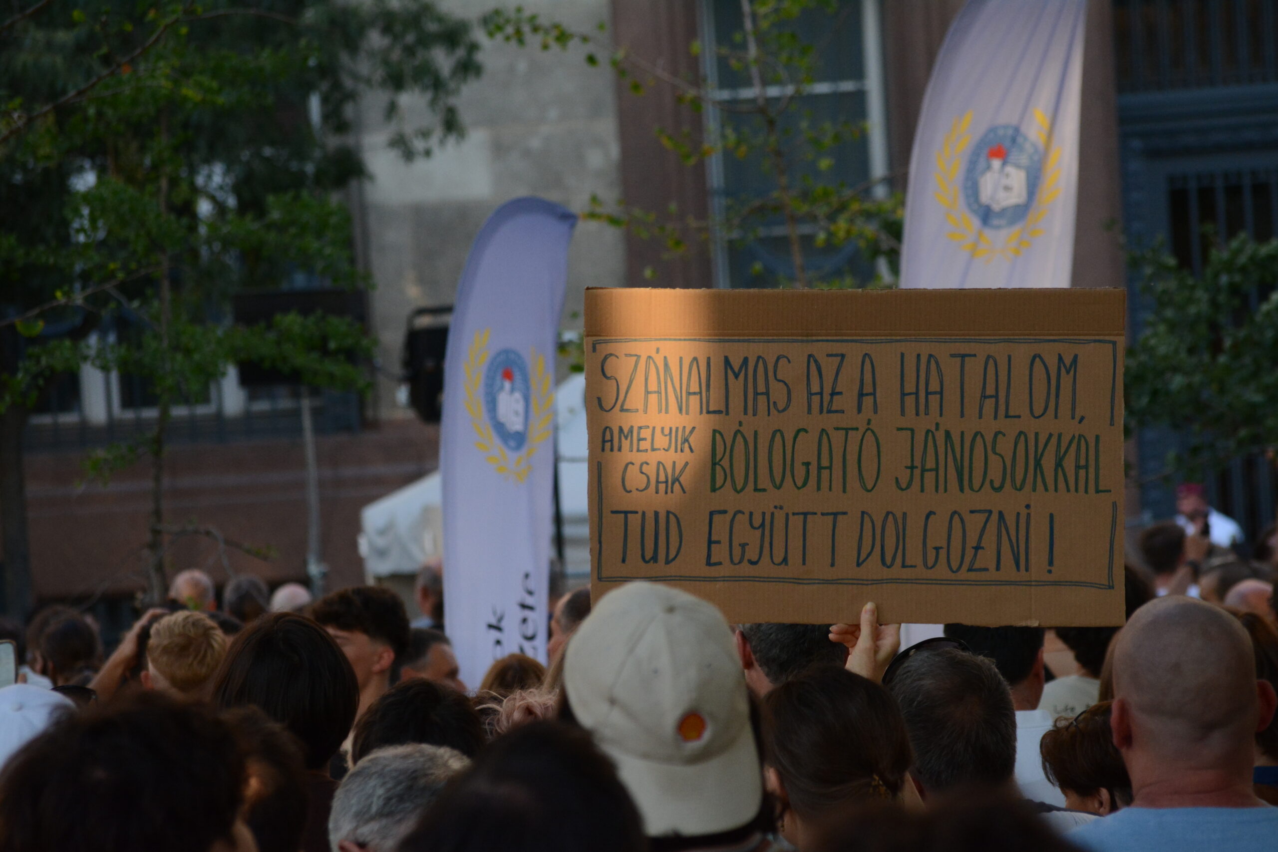 Következett a Madách Imre Gimnázium egy végzős diákja, aki saját magát úgy jellemezte, hogy konfliktuskerülő. Ennek ellenére úgy érezte, el kell jönnie a tüntetésre, mert az események – saját bevallása szerint – megérintették. Ezek után kritizálta a digitális eszközök használatának korlátozását, és véleményezte a rendeletet, amit elkapkodott döntésnek és átgondolatlannak nevetett. Kijelentette, hogy eddig félt megszólalni, de most már úgy érezte, ki kell állnia.