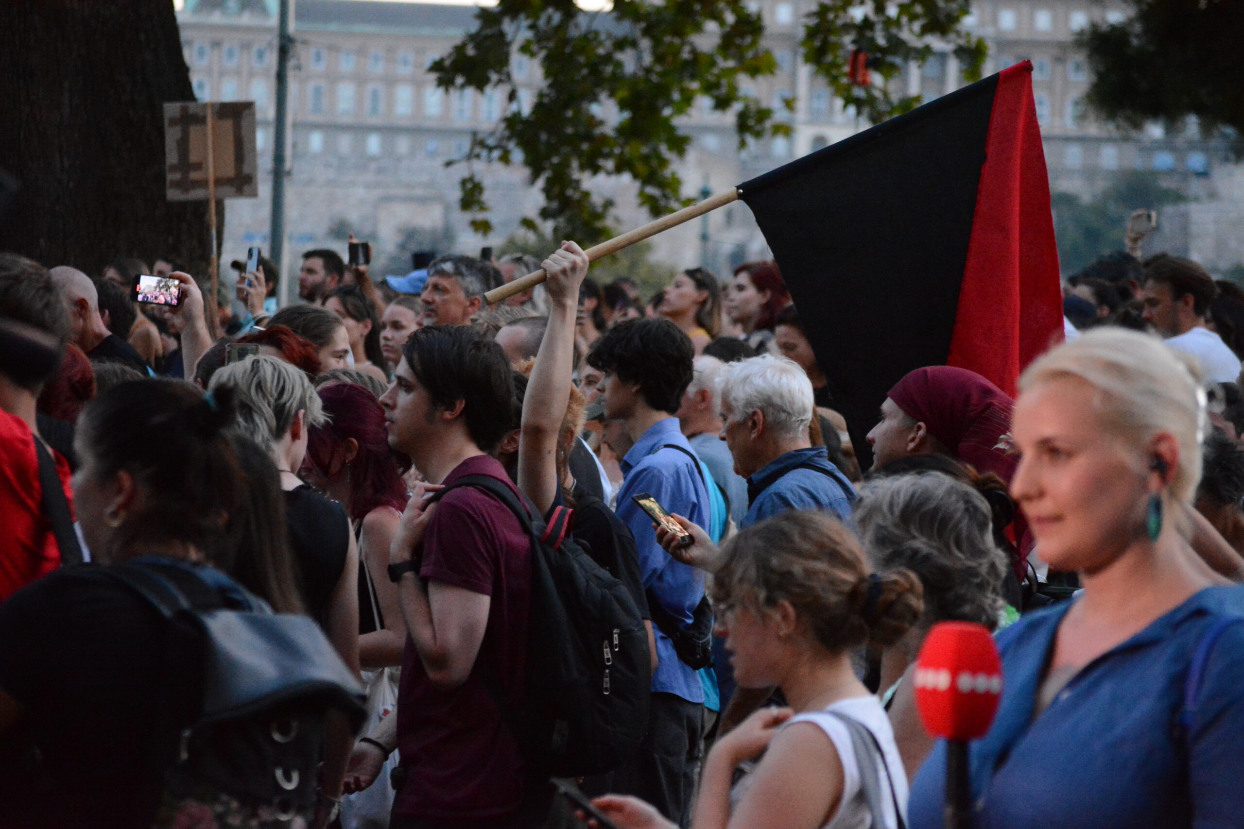 Természetesen a hazai Antifa mozgalom sem maradhatott ki a tüntetésből, a féltucatnyi, punk kinézetű fiatal egymás kezéből szedegette ki és lengette a piros-fekete zászlót. Kicsit megpróbáltak a végén hergelni, hogy menjenek a Parlamenthez, de a tömeg nem volt erre vevő, inkább békésen hazaindultak, végtére is holnap iskola. Néhány fiatal maradt csak a helyszínen, ők kisebb csoportokban, békés hangulatban beszélgettek egymással, ücsörögve a fűben.