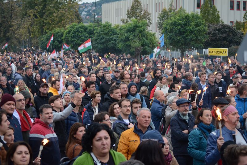 Így aztán este hét óra tájban a korábbi tömeg maradék, tanácstalan része megunta a vezető nélküli kóválygást, a fáklyáik is leégtek, így az élőlánc fel sem állt. Magyar mindeközben élőláncról, tüntetőkről, párttársakról és hívekről megfeledkezve boldogan adta interjúk sorát boldog-boldogtalannak, Nagy Ervin pedig üdvözült mosollyal szelfizett bárkivel, aki közel ment teherautójához.