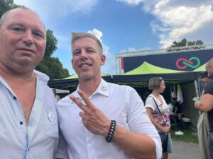 aki egyébként részt vett Magyar Péter pártjának múltkori, az MTVA székház előtt tartott tüntetésén is.